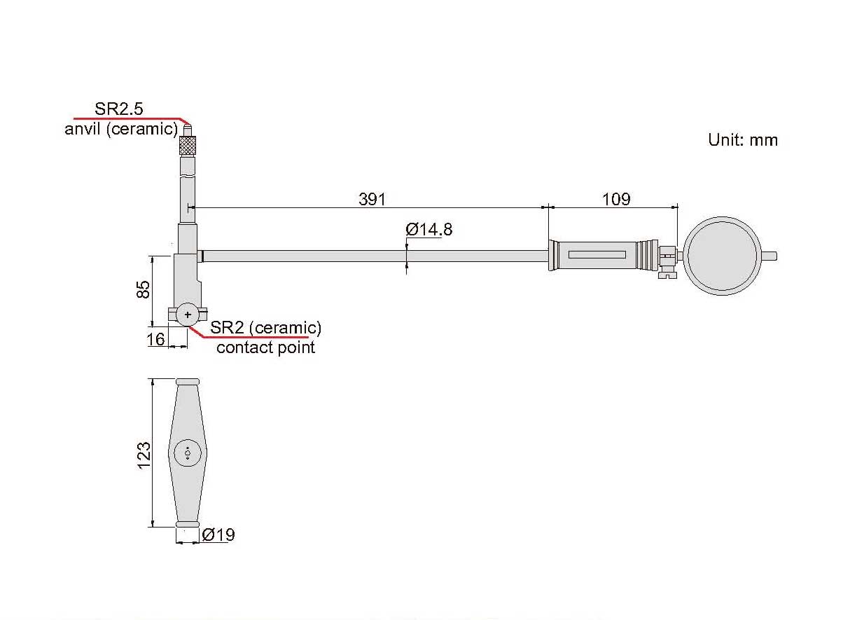 Dial indicator, code 2308-10FA, range 10mm, graduation 0.01mm |