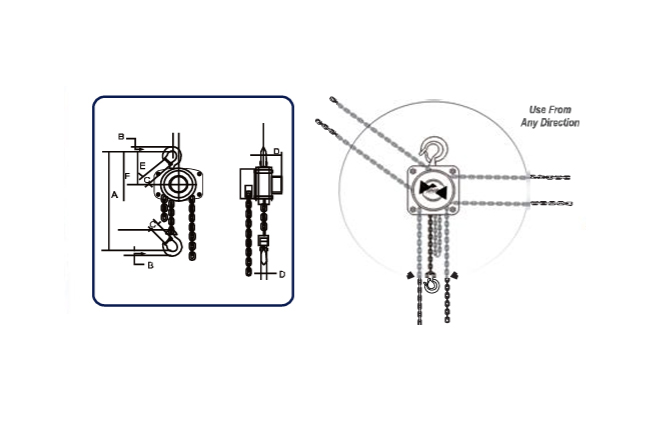 Hand chain overhanled to lift load one food (kg) |