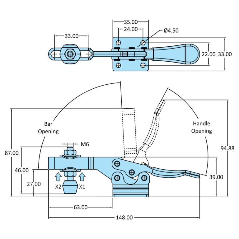 Clamping bar opening |