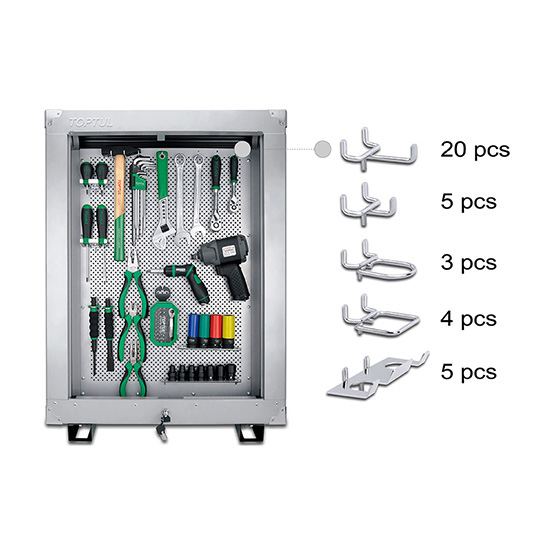 Hooks for hanging various tools such as screwdriver, spanners, Pliers,ratchet handles and etc.
