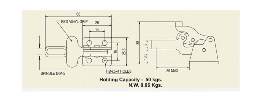 Hold down toggle clamp with forward handle this toggle clamp have clamp have a flanged base with holes for mounting on the fixture plate.